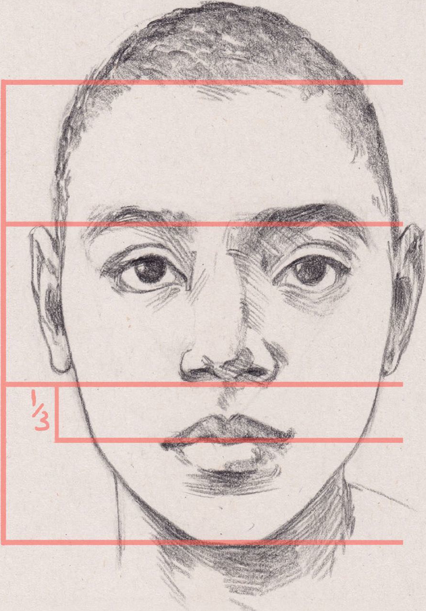Это помогает указать расположение элементов перед их рисованием, иначе наши пропорции могут пойти не так. Есть много систем пропорций на выбор - также стоит отметить, что у всех немного разные пропорции лица, иначе мы все выглядели бы одинаково!
