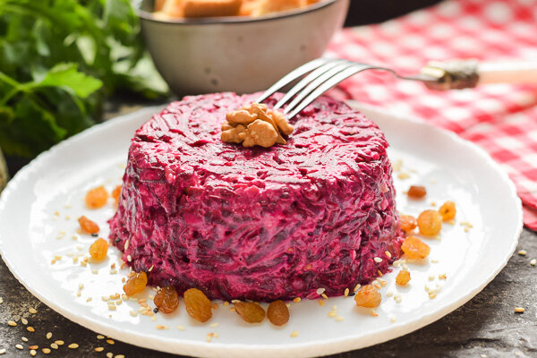 Сегодня приготовим очень вкусный и легкий салат из свеклы с грецкими орехами, чесноком и майонезом. Наглядный рецепт с пошаговыми фото вы найдете на нашем сайте: