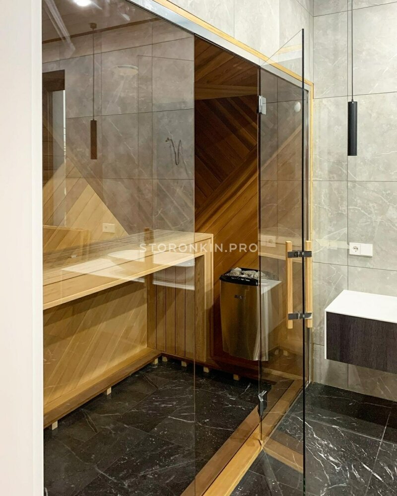 Storonkin Pro изготавливает стеклянные двери для бани, сауны, СПА из закаленного термостойкого стекла, которое точно не треснет! Стоимость дверей для сауны из стекла на заказ рассчитывается индивидуально, и зависит от габаритов и формы (угловая или в нишу) конструкции, типа/цвета материала, дизайна фурнитуры, сложности проекта. Заполнить заявку на расчет можно онлайн, а посмотреть фото готовых работ — в галерее сайта.