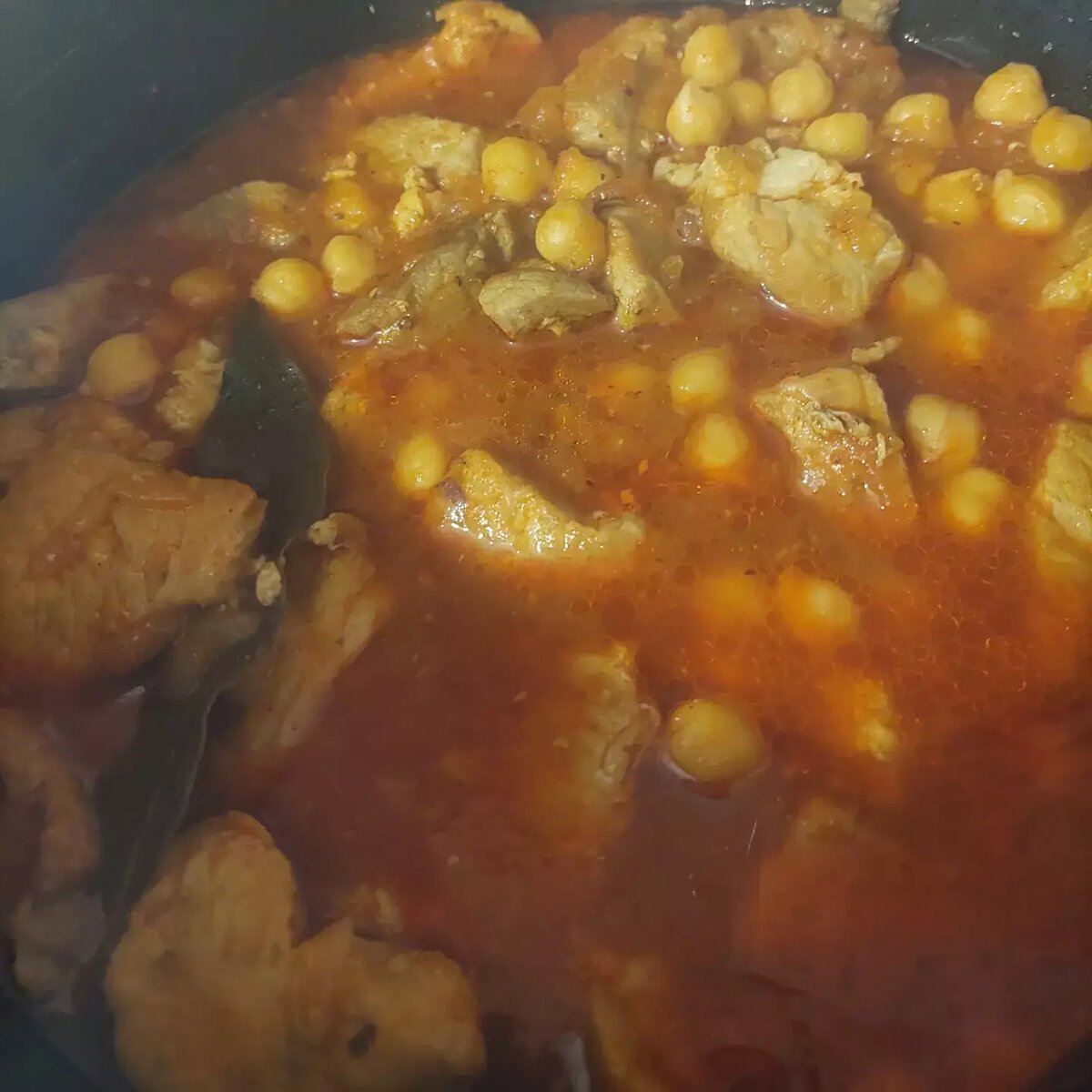 #мультиварка Ингредиенты: Свинина , Нут , Лук, Помидор, Томатная паста , Лавровый лист , Соль, Перец Способ приготовления: Предварительно замочить нут, желательно на ночь. Мясо нарезать, обжарить (по желанию). Обжарить лук. Помидор ошпарить, очистить от кожицы. Нарезать кубиком. Все ингредиенты сложить в чашу мультиварки. Добавить специи, соль, перец по вкусу. Добавить томат и немного воды. Поставить режим "Тушение" на час.
