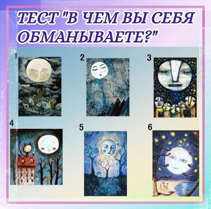 Мы часто не замечаем того,что обманываем себя,да,нам действительно таким образом легче пережить многие неприятные моменты,но всему есть предел. Чтобы помочь вам разобраться в том,где вы себя обманываете,пройдите этот тест. Надеюсь,он действительно поможет вам пересмотреть некоторые моменты в вашей жизни. Присмотритесь к картинкам,интуитивно выбирайте картинку,которая привлекает вас больше всего.Можете настроиться на вопрос.теста,закрыть глаза,а потом выбрать тот вариант к которому сразу потянулись. Всех Благ вам дорогие мои 😊 Если вам понравился тест и хотите больше таких тестов,ставьте лайк и подписывайтесь на канал.