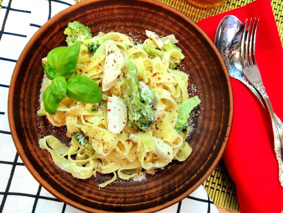 Простой, вкусный, быстрый рецепт; то, что нужно после долгого рабочего дня👍! #курица Ингредиенты: лапши, куриного филе, брокколи, сливок (10-20%), пармезана, чеснока, растительного масла, Соль, перец Способ приготовления: Ставим воду для варки лапши, не забываем посолить. Курицу режем не слишком тонкими пластинками, брокколи разделим на небольшие соцветия, чеснок измельчаем, сыр на терку. В сковороду с разогретым растительным маслом выкладываем чеснок, через 5-10 секунд добавляем курицу, обжарим, помешивая. Через 3-5 минут выкладываем брокколи, обжарим всё вместе ещё пару минут. Солим, перчим по вкусу. Вливаем сливки, всыпаем сыр, протушим всё вместе ещё буквально пару минут. Лапшу откинем на сито, не промывая, перекладываем в сковороду, перемешиваем, готово!! При подаче можно присыпать сверху пармезаном, перцем (у меня розовый), украсить зеленью. Приятного аппетита🤗🤗🤗.