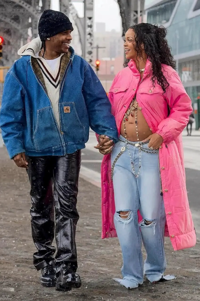 Рианна и A$AP Rocky эффектно объявили миру, что ждут ребенка, устроив фотоссесию посреди Гарлема. Снимки, на которых Рири позирует в объективе фотографа Майлса Диггса в розовом пуховике Chanel из коллекции осень-зима 1996 и рваных джинсах Vetements, а музыкант в бомбере из денима и кожаных брюках, уже облетели весь инстаграм. Со времен Met Gala их стиль с рэпером успел синхронизироваться еще больше (что мы наблюдали на примере многочисленных совместных выходов с осени 2021-го). Но Рианна не была бы собой, если бы не добавила к образу роскошные золотые украшения (пояс тоже винтажный Chanel, разумеется). А главным аксессуаром стал массивный крест Christian Lacroix 1980-х годов. Другого от нее никто и не ждал. Вряд ли она согласилась бы обозревать это в белом платье. Да, это красиво и элегантно — но совсем не в духе настоящей Fashion Killa. Поэтому советуем и вам вне зависимости от положения взять на вооружение для грядущей весны взять этот модный прием — розовый пуховик + рваные джинсы.