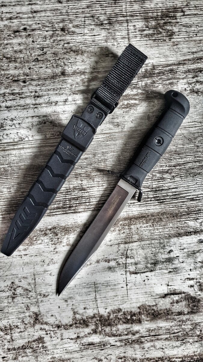 Берешь в руки этот нож и понимаешь, что уже никогда не будешь смотреть в магазинах на бесконечный конвейер из финок НКВД и Ножей разведчика. Потому что они все кажутся теперь плюшевыми игрушками. Ну или сувенирами, вроде тех, что в Египте туристам на барахолках продают. Напоминает ли «Вектор» легендарный «Глок 78»? И да и нет. Гардой, полосками на рукояти, да замком на ножнах. Форма клинка? Окститесь! Да половина ножей армейских рылом уходит во времена Второй Мировой и к НР-40. По стали: AUS-8 на порядок круче 1095 у Глока, да и 420HC у «Вектора» тоже уделает австрийцев. Рукоять у «Вектора» в разы прикольнее глоковской. Во-первых, тактильно приятнее, потому как не тупой пластик, а кратон. Во-вторых, есть старый-добрый грибок, стыренный нашими ножевыми мастерами у скандинавов еще сто лет назад. Вообще, что касаемо хвата за рукоять, то придраться не к чему от слова совсем. Любой хват: молоточный, диагональный, обратный. Нож ложится намертво, ничего не мешает. Разумеется, любители поудаля
