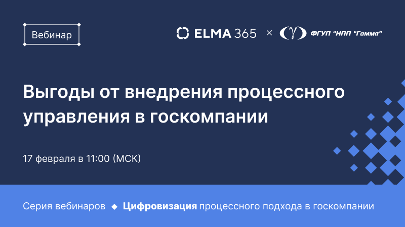 На примере ФГУП «НПП «ГАММА» покажем как сократить бюрократию в 2 раза и сделать процессы прозрачными. О чем? Процессы управления на государственном предприятии, как правило, не отличаются своей гибкостью и прозрачностью. Это тормозит масштабирование, скорость стратегического планирования и принятия решений. На вебинаре поделимся реальным опытом от практиков внедрения системы ELMA – ФГУП «НПП «ГАММА» и покажем, как вывести управление бизнес-процессами на качественно новый уровень. *ФГУП «НПП «ГАММА» – Федеральное государственное унитарное предприятие, в ведении которого находится комплексная защита информации в автоматизированных системах управления, средствах информатизации и информационных технологиях. Предприятие включено в «Перечень стратегических предприятий и стратегических акционерных обществ». А еще расскажем: Для кого: Спикеры Павел Фрумкин, Руководитель группы внедрения ФГУП «НПП «Гамма» Станислав Поминов, Руководитель направления по работе с госучреждениями в «ELMA» 🔥 Участ