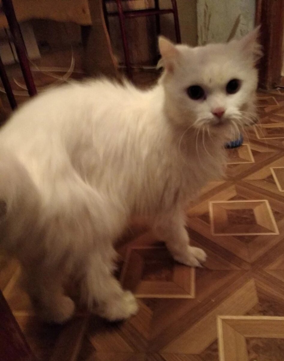 У белого персика Юрочки умерла любимая хозяйка, он остался один в квартире. К счастью, родственник ушедшей женщины кота на улицу не отправил. Он просто отдал ключи от квартиры знакомой, чтоб из Макеевки в Донецк ездила кормить кота, и уехал. На фото видно, в каком сейчас состоянии прежде холеный белоснежный перс... Юрочка худенький совсем, со свалявшейся, тусклой шерсткой (его банально нужно хотя бы откормить и показать врачу). 29 января его забрала на передержку Наталья, и в этот же день стало известно, что 1 февраля в квартиру уже заселяются новые владельцы... ( а что ждало кота?) Но, на передержке выяснилось, что, ласковый с людьми Юрочка панически боится других животных. Стоит ему увидеть кого то из котов, он так надрывно кричит, что начинает кашлять. Поэтому, очень нужно, чтобы он был один. В четверг Наталья и Ольга Боговая повезут Юрочку на обследование в клинику ЦВМ. Тогда будет понятно, нуждается ли котик в лечении, или будет достаточно хорошего питания, витаминов и ухода для в