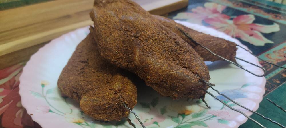 #поваротбога #курица #кпиву Вяленое мясо из Куриного филе, всегда хотела попробовать сделать сама и вот что получилось! Ингредиенты: Филе, Соль, Пажитник , Паприка, Перец чёрный , Хмели-сунели , Чеснока Способ приготовления: Отчистить филе от плёнок, малого филе. Укладываем в контейнер пересыпая крупной солью. Соли не жалеть, нужно чтоб всё мясо было покрыто солью и к друг другу не прикасались кусочки. Так оставляем на сутки, в холодильнике. Через сутки, смываем соль и вымачиваем в холодной воде филе 3 часа, каждые 30 минут меняя воду. Обсушить филе и подвесить на сутки сохнуть. Через сутки филе подсохли, готовим замазку. Специи смешиваем и наливаем тёплой воды. Сначала оставить специи на 15 минут для набухания. Затем долить воды и оставить ещё на 10. Консистенция должна быть как сметана, но не сильно жидко, чтоб не капало, но и не густо, чтоб легко намазывалась! Надеваем крючки или делаем ниточки для подвешивания и начинаем намазывать смесь. Вешаем сушить ещё на 4 дня. Прошло 4 дня. Н