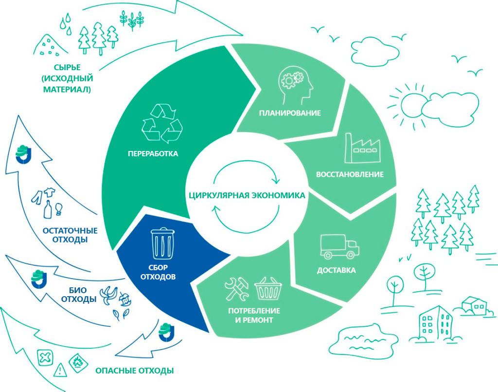 Федеральный проект «Экономика замкнутого цикла» стартует в 2022 году в России, на реализацию проекта будет направлено 10 млрд рублей. Федеральный проект включает шесть направлений, среди которых сокращение образования отходов, создание инфраструктуры по сбору отходов для вторичной переработки, стимулирование использования вторичных ресурсов. Кроме того, проект направлен на ограничение оборота неэкологичной упаковки. Также в документе обозначено создание системы прослеживаемости движения отходов. Ещё одно важное направление по формирования экономики замкнутого цикла – экопросвещение. «Заместитель Председателя Правительства Виктория Абрамченко в ходе мероприятий Гайдаровского форума сообщила об утверждении паспорта федерального проекта «Экономика замкнутого цикла». В первую очередь необходимо организовать возвращение в хозяйственный оборот полезных компонентов, которые возможно извлечь из отходов производства и потребления. Максимальное количество отходов должно превращаться во вторсырьё