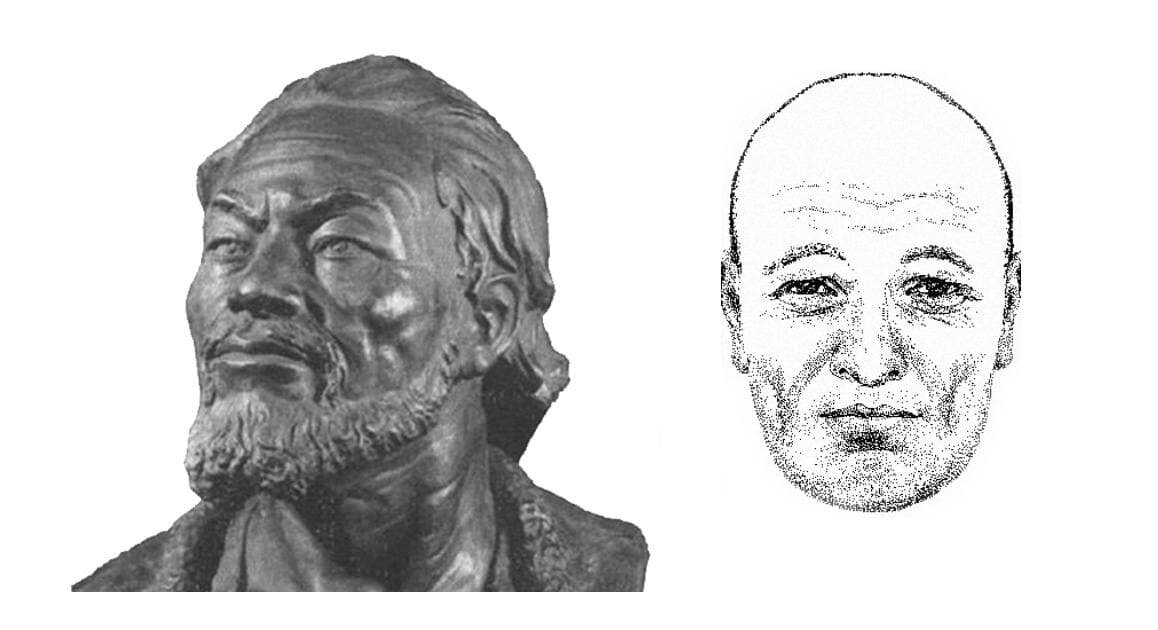 Слева бюст Андрея Боголюбского, созданный в 1939 году «специалистом» Герасимовым Родословная у Андрея была такая: Пра-прабабка - свейка (шведка); прабабка - греческая принцесса; бабка - дочь англосаксонского короля; дед - наполовину грек; мать — дочь половецкого хана; отец — наполовину англосакс Юрий Долгорукий. Как специалист Герасимов нашёл признаки монголоидности на черепе князя? Ответ прост: в 20 веке считалось, что среди половцев доминирует монголоидный расовый тип. Раз сказали, что половцы - монголы, значит лепим из князя монгола. Замечательный, непредвзятый специалист! В 2007 останки князя исследовали по судебно-медицинским программам. Современные специалисты выдали заключение: «Предположение о том, что князь Андрей мог иметь монголоидные черты полностью исключается». Современная реконструкция Андрея на фото справа.
