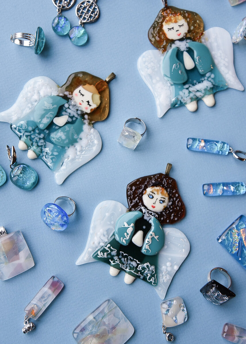 Мне казалось, все все уже знают, ан нет🤷♂️ Из чего это сделано? Это Мурано? А оно хрупкое? Вот самые часто задаваемые вопросы, которые я слышу от вас. Давайте ещё раз и по порядку 🤗 Итак: ✅я работаю со стеклом, но не с простым, а специальным, аж из Америки привезённым, фирмы Спектрум. Это стекло прекрасно ведёт себя при высоких температурах (650-800 град!), при которых, собственно, и осуществляется фьюзинг - спекание стекла. Именно в этой технике выполнено большинство моих работ (Фонарики, подсвечники, тарелочки, елочки, снежинки и, конечно, украшения). А вот фигурки домиков и ангелочков, солнышки - их я делаю из витражного стекла, и заметьте - тоже американского! Просто у нас такого не производят, а у китайского пока очень плохое качество🤷♂️ Американское стоит дороже, но и красивее гораздо👍 Витражное стекло отличается красивыми переливами цвета, фигурки из него лучше вешать на окошко или на люстру - так вы лучше насладитесь красотой стеклышек🤗 ✅Украшения делаю, исполь