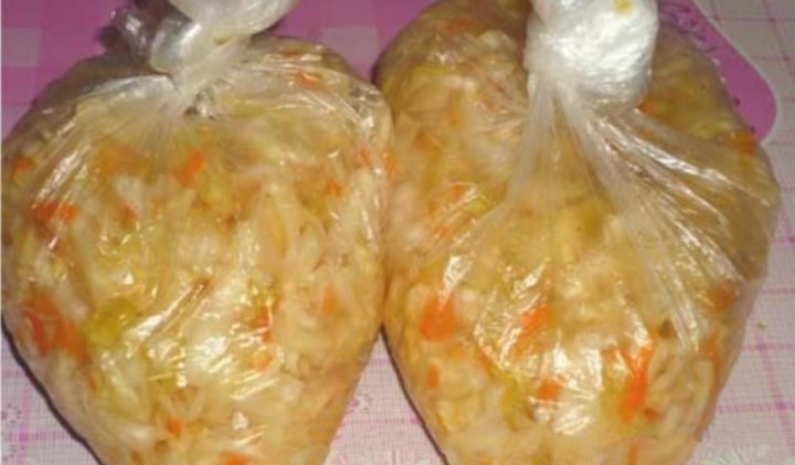 Натираем на крупной терке морковь и добавляем к капусте. Руками пережимаем капусту с морковью, чтобы появился сок. Сильно жать не нужно, достаточно несколько раз сжать капусту, чтобы она стала мягкая. Капусту с морковью перекладываем в самый обычный полиэтиленовый пакет (можно взять два). Добавляем соль, сахар и завязываем пакет. Трясем, чтобы сахар с солью равномерно распределились по капусте. Оставляем при комнатной температуре на 24 часа. При этом каждые 4-6 часов пакет нужно трясти, чтобы капуста перемешивалась. Затем убираем в холодильник на 2 -2,5 дня. И можно пробовать. Получается очень вкусная квашеная капуста - хрустящая, сочная, просто супер! Обязательно попробуйте, ведь это очень просто!