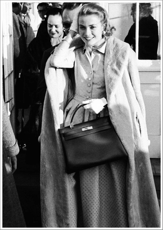 В 1956 году Грейс Келли закрепила желанный статус еще одной сумки, когда ее сфотографировали с большой сумкой Hermès, прижатой к груди. Позже выяснилось, что принцесса Монако схватила сумку, чтобы скрыть свою беременность. В 1977 году Sac à Courroies стал Kelly, и его судьба как иконы сумок была решена.