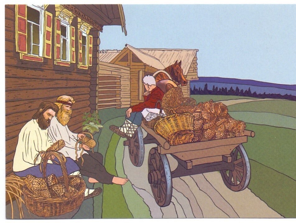 - Я лапти плету, другой печи кладет, третий подковы кует. А где работа, там и песня!