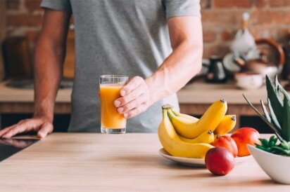Чем богаты бананы? Калорийность бананов варьируется в зависимости от сорта и спелости. В среднем в 100 граммах содержится 65-150 ккал. Зелёные плоды содержат больше калия и витамина С, могут «вязать рот», так как крахмал в них ещё не преобразовался в сахар, а значит, гликемический индекс в них ниже, чем в спелых. Однако по мере созревания в бананах накапливаются полезные антиоксиданты, а также увеличивается калорийность. В бананах практически нет жиров, белков и совсем нет холестерина. Зато много калия, магния, фосфора и витаминов группы В и С, антиоксидантов, а также сахара. На них редко бывает аллергия, поэтому плоды рекомендуют есть даже маленьким детям и беременным женщинам. Людям, страдающим диабетом, плоды есть тоже можно, но стоит подходить к составлению рациона с ответственностью и знанием меры. Бананы считаются здоровой сбалансированной пищей. За счёт большого количества углеводов они позволяют быстро насытиться и на некоторое время восполнить недостаток энергии. Калий необхо