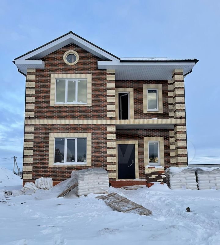 Фасад дома выполнен керамическим лицевым кирпичом 1.4НФ, флейм магма с обрамлением проемов светлым кирпичом. При заказе строительства дома возможен выезд на построенный объект для осмотра.