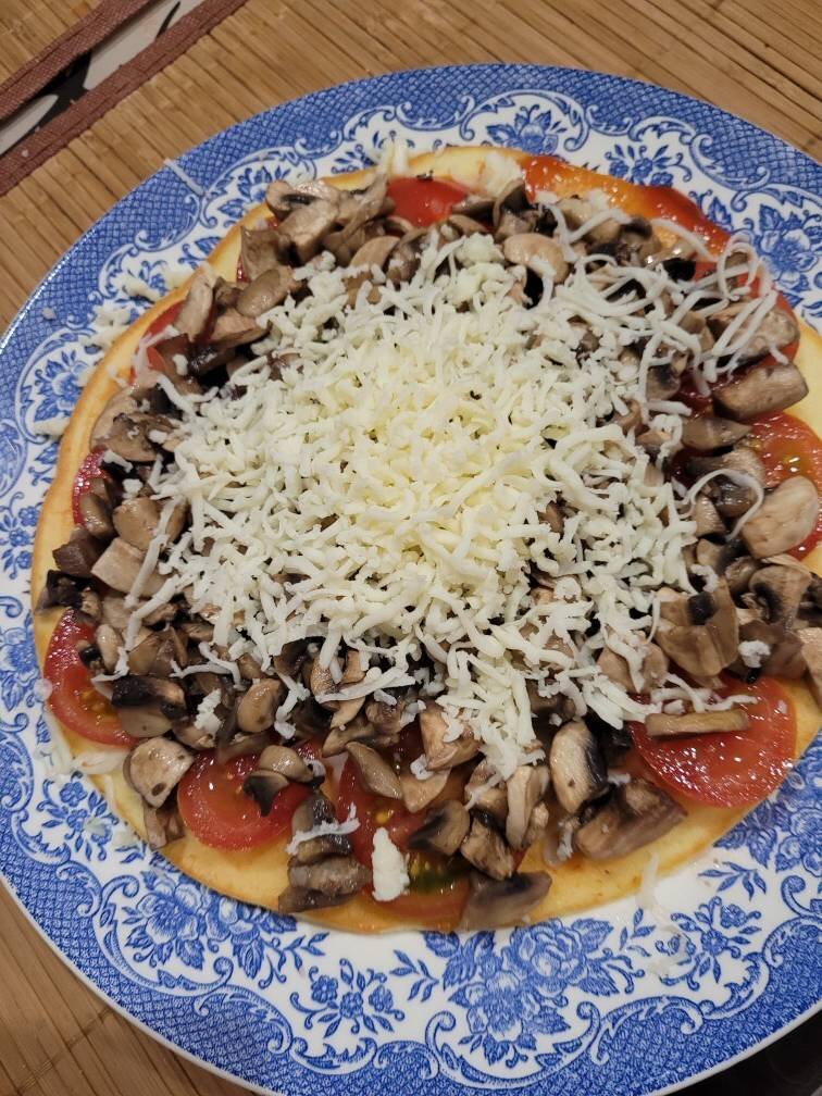 Рецепт из меню для похудения. Очень вкусное тесто) Ингредиенты: яйца, рисовой муки, кефира, разрыхлителя, оливкового масла, Соль , кетчупа, сулугуни, шампиньонов, помидоров Способ приготовления: В миску разбиваем яйца, добавляем кефир, муку, разрыхлитель, соль, масло. Все хорошо перемешиваем. Разогреваем сковороду с антипригарным покрытием или смазываем сковороду маслом. Выкладываем тесто, разравниваем на размер сковороды и на среднем огне доводим до готовности. Переворачиваем лепёшку, обжариваем с другой стороны. Параллельно обжариваем шампиньоны. У меня были замороженные, много жидкости выделили. Лепёшку смазываем кетчупом натираем половину сыра. Выкладываем помидоры, шампиньоны. Натираем вторую часть сыра. Приятного аппетита!!