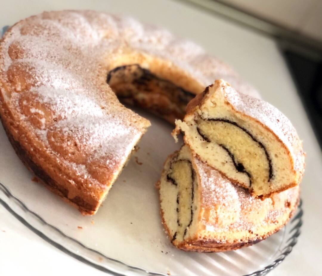 Из продуктов которые всегда под рукой можно сделать вполне достойный и презентабельный кекс, а к тому же ещё и очень вкусный.На подготовку уйдёт не более 20-25 минут. Ингредиенты: Для желтого теста:, желтка, сахара, ванильного экстракта, молока, подсолнечного масла, муки, разрыхлителя, соли, Для белого теста:, белка, сахара, ванильной эссенции, молоко, подсолнечного масла, муки, разрыхлителя, соли, Какао Способ приготовления: Желтки взбить с сахаром и ванильным экстрактом до светлой, пышной массы. Влить молоко и растительное масло, взбить. Добавить просеянную с разрыхлителем муку, соль, перемешать на небольшой скорости. Чистыми и сухими венчиками начинаем взбивать белок, постепенно добавляем сахар и взбиваем до мягких пиков и блеска. Аккуратно по стеночке вливаем масло и молоко, ванильный экстракт. Добавляем просеянную с разрыхлителем и солью муку и аккуратно движениями сверху вниз лопаткой вымешиваем тесто. Форму смазываем сливочным маслом (у меня 25 см в диаметре, но вполне можно бра