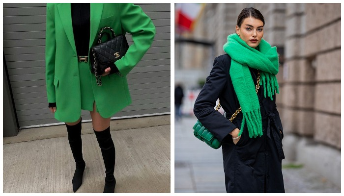 Весна и лето 2022 обещают быть яркими и «сочными». Актуальные тренды сулят нам нечто неожиданное и очень креативное. Сегодня мы с вами познакомимся с самым неожиданным трендовым оттенком сезона весна-лето 2022. Представляем вашему вниманию будущий актуальный цвет теплого сезона — благоухающая зелень. «Сочный» по-весеннему зеленый цвет должен составлять 90% женского гардероба. Яркий брючный костюм комплементарного оттенка можно сгруппировать с бежевой рубашкой, зеленой сумкой из кожи и черными босоножками с тонкими перемычками. Зеленый и фиолетовый — два цвета созданные друг для друга. В этой композиции гуру моды предпочли дополнить ярко-зеленое пальто фиолетовым платьем, за счет чего получился просто ошеломительный пестрый look. Зеленые вещи смело можно миксовать весной, так и летом с бежевой палитрой. Смотрите, как гармонично зеленый принтованный жилет смотрится с белой футболкой и бежевыми брюками. Зеленые ботильоны и сумка терракотового цвета добавили завершенности этому образу. Яр
