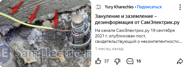 Интернет и, в частности Дзен, электрики завалили дезинформацией, которая доказывает, что они не знают требования ПУЭ. Эти электрики выдумали системы заземления, контуры заземления, сопротивления заземления, утечки и защиту от них посредством УЗО и т.д. Анализ некоторых статей электриков-дезинформаторов опубликован на канале.