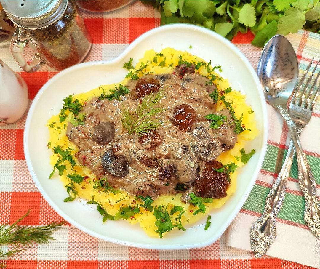 Ещё один быстрый рецепт для будничного ужина😊, быстрый, простой, потрясающе вкусный👍👍, нежнейшая печёночка с ароматными грибами, ммм... #КуринаяПеченка #Печень #ПеченкаСгрибамиВсоусе Ингредиенты: куриной печёнки, шампиньонов, опят, сметаны, сливочного масла, луковица, раст. масла, муки, Соль, перец, специи Способ приготовления: Печёнку можно брать любую, мне больше нравится куриная. Её необходимо промыть, очистить от всего лишнего. Грибы также подойдут любые, у меня замороженные. Печёнку слегка запанируем в муке, это можно сделать, например, в пакете, чтобы мука не разлеталась по кухне. В сковороду с разогретым растительным маслом выкладываем печёнку, на этом этапе нет цели довести её до готовности, нужно лишь запечатать в ней всё соки. Подрумянившуюся печёнку перекладываем пока в отдельную миску - внутри она пока не готова! А в ту же самую сковороду выкладываем лук, нарезанный четвертькольцами или кубиком, обжарим пару минут. Теперь к луку отправляем грибы, режем так, как Вам нрави