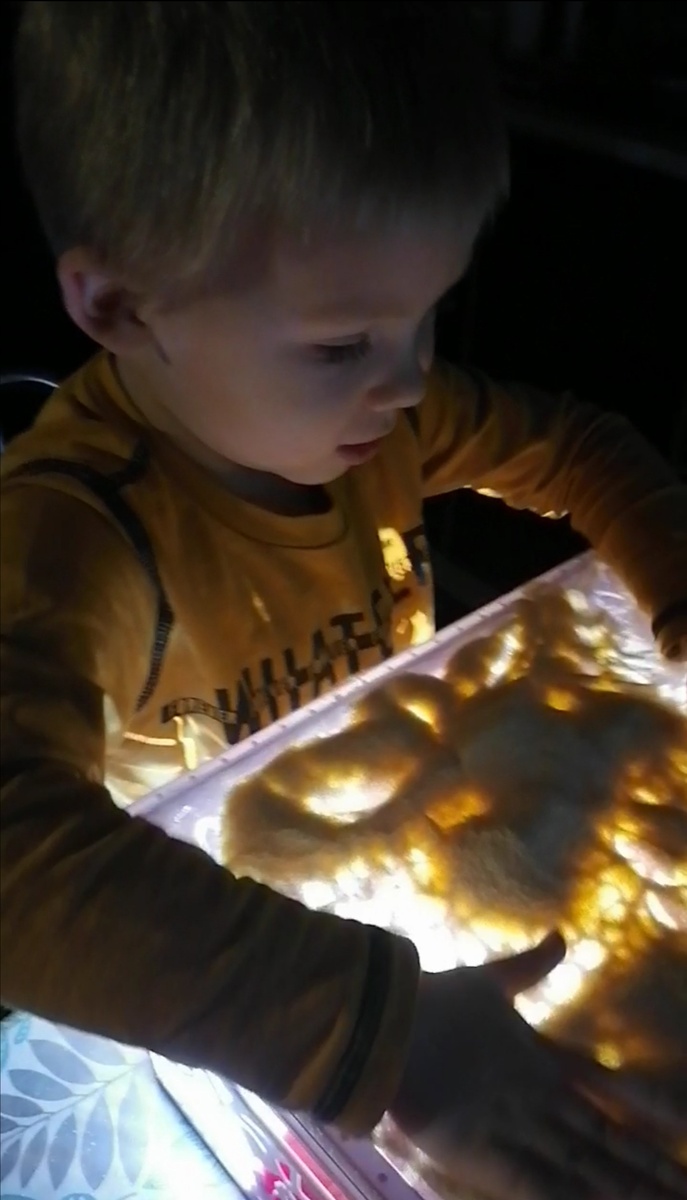 Вчера я написала статью о том, как влияет осязание на речь детей и почему развивать тактильные ощущения у ребёнка необходимо. Сегодня я думаю, стоит поделиться с Вами идеями игр для их развития. Развивать тактильно ребёнка можно не только с помощью светового ящика, но и других предметов, того же пластилина, кинетического песка, разнообразных сенсорных коробок, сквишей, слаймов или даже натуральных фруктов, например, апельсинов. Но так как на моем канале я показывала Вам именно такой ящик, то и играть мы будем с ним. Конечно, если он вам не нравится или Вы не хотите его делать, Вы с лёгкостью можете заменить его на поднос с тем же песком или взять сенсорную коробку с любой крупой. Игры на световом ящике. Итак, напомню, так как песок я не люблю, то я заменила его манкой, насыпав её на крышку светового ящика. Обязательно стоит помнить, что тактильные ощущения мы будем развивать параллельно в игре, выполняя какие-то другие задания. Для нас важно, чтобы ребёнок хотел в это играть и у