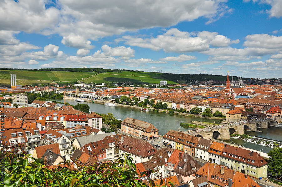 Сам городок находится на берегах реки Майн, совсем недалеко на западной возвышенности на берегу Майна возвышается величественная крепость Мариенберг, через которую, если пройти старый мост, можно попасть в центр «Старого города». Первые упоминания о Вюрцбурге встречаются в VIII столетии. Хотя во время археологических раскопок под городом нашли остатки кельтских поселений датированных 1 тысячелетием до нашей эры. Вюрцбургское епископство, которое образовалось в далёком 741 году и существует по сей день, оказало огромное влияние на историю города, да и всей Германии, в общем. Этот город очень любил и часто здесь останавливался немецкий император Фридрих Барбаросса. Именно в этом городе Барбаросса сыграл свадьбу со своей возлюбленной Беатрикс Бургундской в 1156 году. Тем самым показав, на сколько он уважает и ценит этот город. Известнейший по всему миру Вюрцбургский университет был основан в 1402 году. Он работает и в наше время, является одним из самых старых университетов Германии и все
