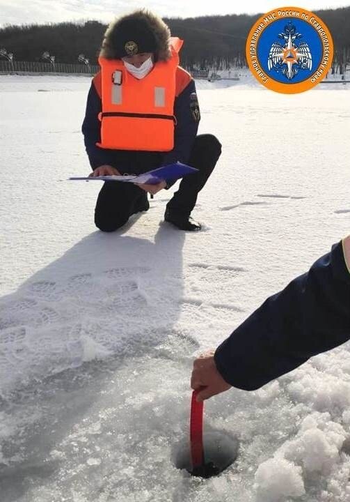 «Каждому человеку необходимо знать, что безопасная толщина для выхода на лед одного человека должна быть от 7-ми сантиметров и выше!», – отметил государственный инспектор ГИМС Владимир Тарасенко, – «Как показали замеры, толщина чистого льда на данный момент составляет всего 4 сантиметра. А это значит, что выходить на поверхность водоема ни в коем случае нельзя!»