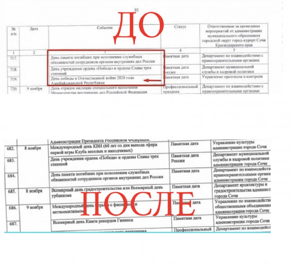 По официальной версии сайт был взломан азербайджанскими хакерами. Завтра на собрании Сочинского отделения Союза армян России будет рассмотрен этот вопрос. Союз армян России инициировал расследование с целью выявить, является ли данная провокация делом рук «азербайджанских хакеров» или за этим стоят намного более серьезные антироссийские силы. Комментарий Администрации г.Сочи: 29 декабря 2021 года на сайте Администрации города #Сочи было размещено Постановление № 3222 от 27.12.2021 "Об утверждении календарного плана праздничных дней, памятных и юбилейных дат, знаменательных событий и мероприятий на 2022 год"