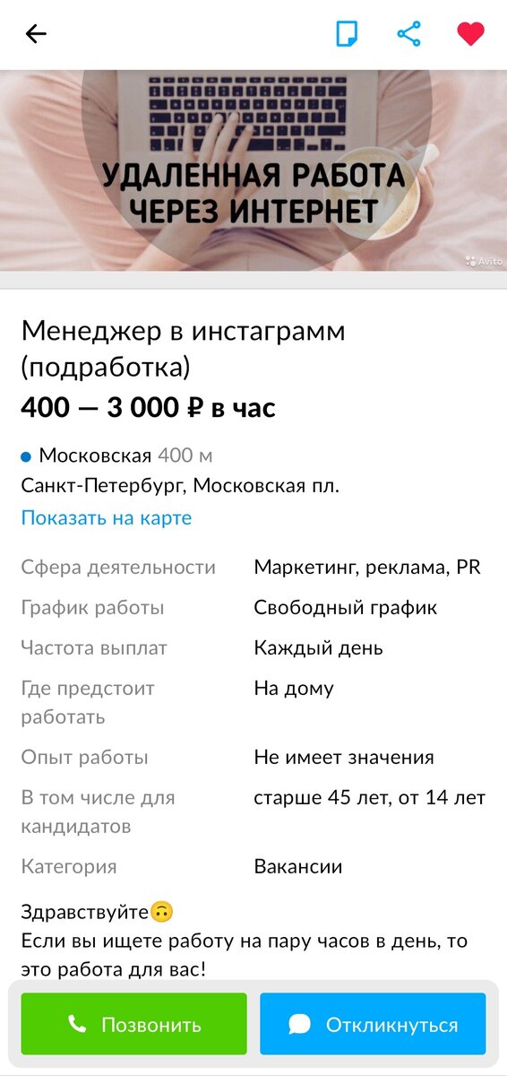 Наткнулся на интересное объявление где можно работать удаленно в качестве подработки 2-4 часа и зарабатывать до 3 тысяч в день Если на Авито что-то касается денег или общения, то лучше переписку вести в самом Авито, так будет проще потом доказать если пойдет не так. Я ей ещё раз копировал свое предложение с встречей или договором, но в наше время только скрины переписки имеют вес😁