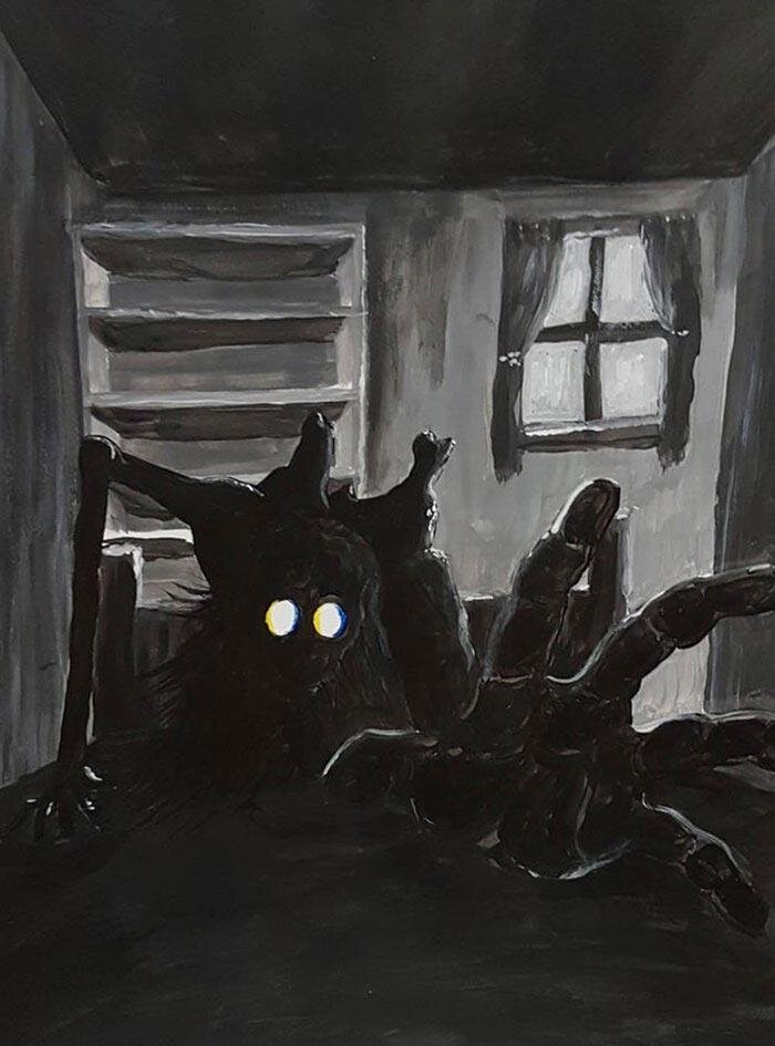 Я проснулся внезапно в ночной тишине, И душа испугалась молчания ночи. Я увидел на темной стене Чьи-то скорбные очи. Без конца на пустой и безмолвной стене Эти полные скорби и ужаса очи Всё мерещатся мне в тишине Леденеющей ночи.