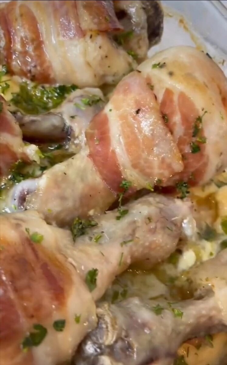 Такого вы ещё не пробовали, куринная голень с беконом и в запеканке с картошкой и сыром. Ингредиенты : Голень 1 кг. Картофель 5 - 6 штук среднего размера. Майонез 2 ст. л. Соль и специи. Сыр плавленый 6 ломтиков. Бекон сырокопченый 200 гр. Картошку нарезать круглешками, перемешать с майонезом, солью и со специями, выложить в глубокую форму. Поверх картошки положить ломтики сыра. Куриную голень обмататт беконом и положить поверх сыра. Накрываем фольгой и запекаем до готовности при 220 - 230 градусах. Также блюдо подойдёт и на обед и на ужин, также сможете удивить им гостей. Приятного аппетита.