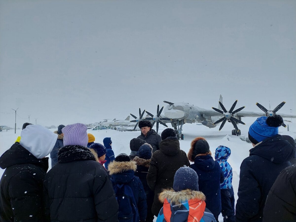 Сотрудники музея провели интересную экскурсию, на которой ребята услышали рассказ о боевом пути Дальней авиации и ее специалистах. Но основой музея все же являются самолеты, которые притягивают к себе взгляд сразу, как только мы оказались на базе.