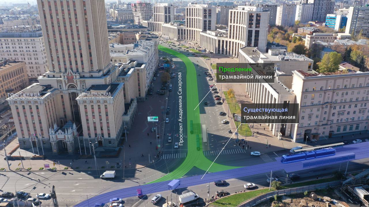 Москва. Проект трамвайной линии по улице Академика Сахарова.