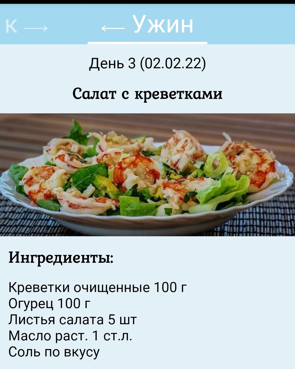 На ужин в меню салат с креветками. Для рецепта требуется 100 гр ОЧИЩЕННЫХ креветок. Сначала я взяла для этого 150 гр, вес очищенных вышел на 60 гр 🤦♀️, пришлось ещё варить. Моя ошибка была в том, что взяла креветки в панцире, неочищенные. Самое сложное в этом салате - почистить креветки 🤦♀️. Я их чистила- чистила, чистила - чистила, а вес на весах никак не доходил до требуемых 100 гр СОВЕТ: покупайте сразу креветки очищенные. Иначе уйдёт много времени, сил, возни. Но результат порадовал. Получился очень вкусный салат. Самое главное, как раз креветки и дают необходимый белок организму, как и любое мясо. Плюс не надо давиться листиком салата + огурец. Порция огромная, хотя вес всего 200 грамм. Надеюсь, вам будет полезным и вкусным этот рецепт. Всем здоровья и достижения цели!