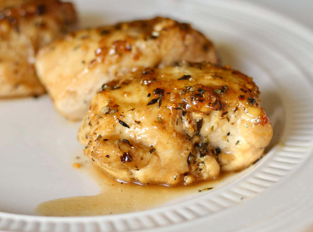- Шаг 4 Растопите оставшееся сливочное масло на сковороде. Добавьте чеснок, готовьте и перемешивайте до появления аромата, 1-2 минуты. Снимите с огня и добавьте коричневый сахар, мед, орегано, тимьян и базилик до получения однородной массы. Верните курицу на сковороду.