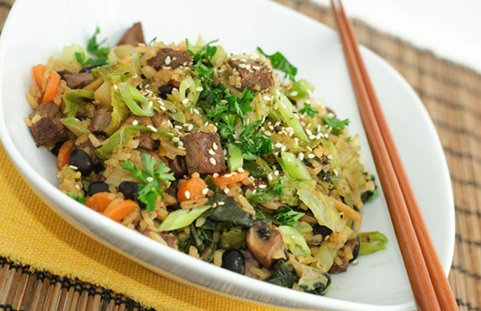 ИНГРЕДИЕНТЫ ПОРЦИИ 2 Рис 150 г Свежие шампиньоны 14 штук Тофу 1 кусок Растительное масло 4 столовые ложки Мини кукуруза 8 штук Стручковый зеленый горошек 8 штук Зеленый лук 4 штуки Соль 1 чайная ложка Легкий соевый соус 3 столовые ложки Куриное яйцо 2 штуки Пикули 25 г Мисо суп по вкусу 1.Сварите рис в кипящей воде до мягкости. Слейте и промойте под холодной водой. 2.Разогрейте вок на среднем огне 1-2 минуты до появления дымка и добавьте растительное масло. Выложите нарезанные грибы и жарьте 2 минуты, затем добавьте нарезанный тофу и готовьте 3 минуты до золотистой корочки. Затем добавьте кукурузу, горошек и зеленый лук и подогрейте овощи на среднем огне. Добавьте рис, посолите и налейте соевый соус. Готовьте еще 2 минуты. 3.В вок вылейте слегка взбитые яйца и жарьте до готовности. Разложите смесь по 2 мискам. Разогрейте суп мисо и подавайте отдельно, рядом положив пикули. Любите читать Дзен «Еды»? Расскажите свое мнение о материале в комментариях и ставьте свои лайки!