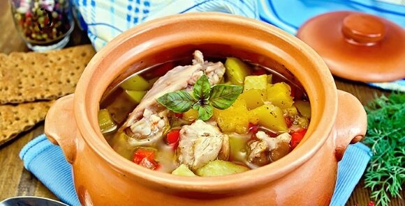 Лук и морковь нарезанную кубиками тоже слегка обжарить. Картошку нарезать кубиками. В большую ёмкость положить картофель, мясо, лук, чернослив морковь и специи....всё перемешать. Разложить по горшочкам и налить до половины горшочков воды. Накрыть крышками и поставить в разогретую духовку до 180С⁰ на 45-50 минут. Жаркое готово! Приятного аппетита!!!
