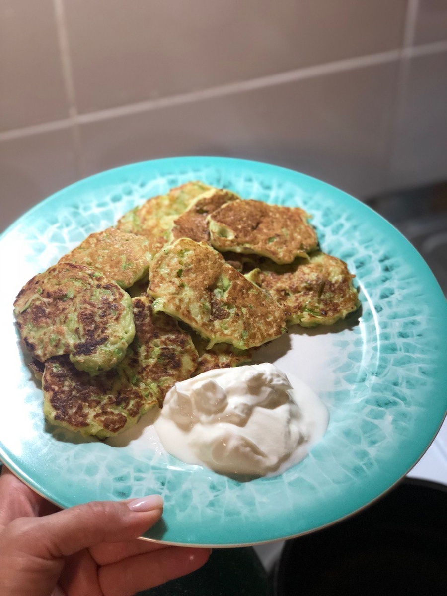 Ингредиенты: кабачок - 200 гр; мука пшеничная - 50 гр; яйцо - 2 шт; лук - 100 гр; сметана 15% - 30 гр. Берем кабачок, трем на крупной терке и отжимаем сок. Добавляем тертую луковицу, перемешиваем, добавляем соль, сырое яйцо, черный молотый перец. Добавляем муку. Разогреваем сковороду , огонь маленький, столовой ложкой набираем тесто и формируем круглые оладушки. Жарим до золотистой корочки, приятного аппетита! Ж/У/Б 19/53/28 Ккал блюда 495