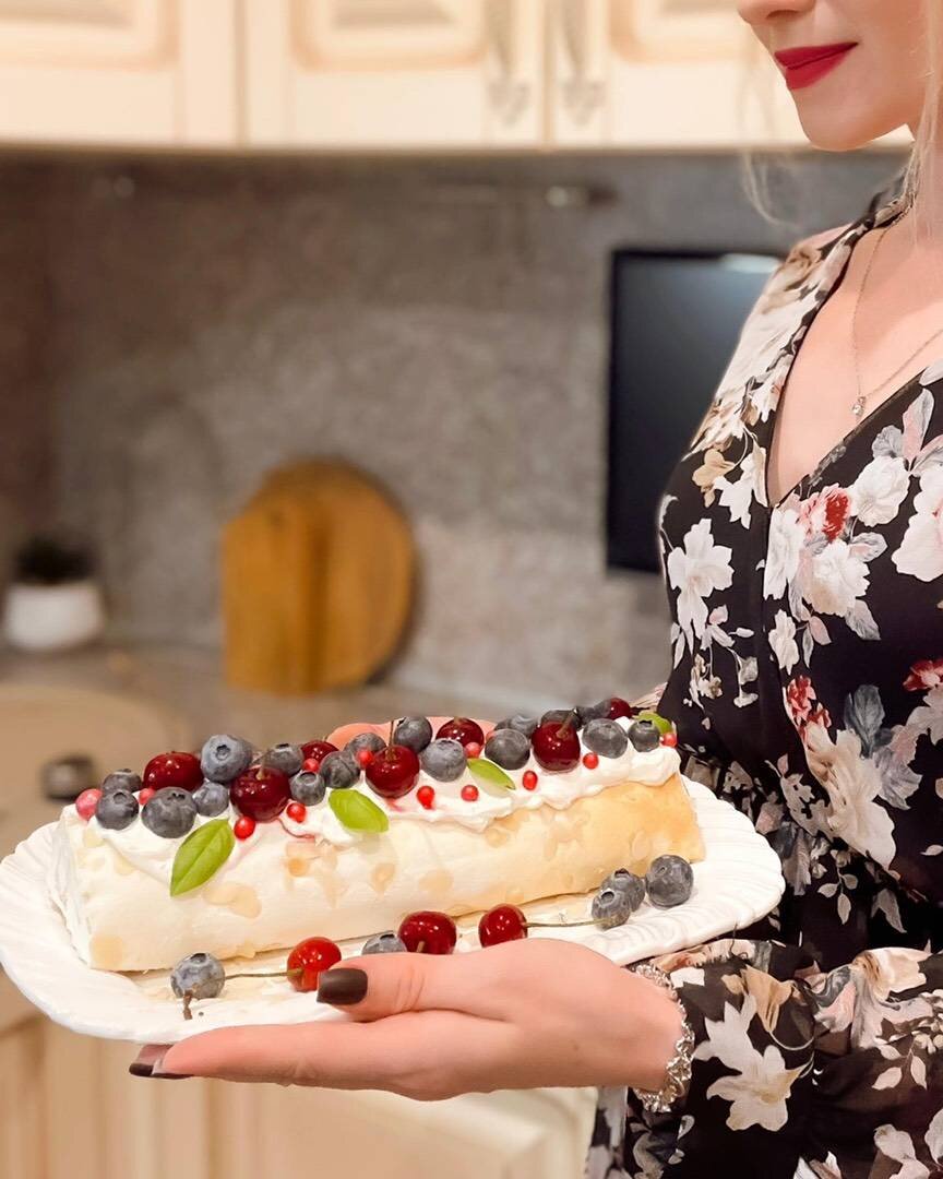 Ингредиенты: Меренга:, белка, соли, Сахарозаменитель , лимонного сока, кукурузного крахмала, миндальных или арахисовых лепестков, Крем:, холодного крем чиза, холодных 33% сливок, Сахарозаменитель , Голубика, вишня для украшения Способ приготовления: К холодным белкам добавить щепотку соли и лимонный сок. Взбить миксером на небольшой скорости, добавляя сахзам и постепенно увеличивая скорость. Взбивать до устойчивых пиков. В конце добавьте кукурузный крахмал и снова взбейте. Выложите меренгу на силиконовый коврик, разровняйте лопаткой. Сверху посыпьте миндальными лепестками и выпекайте в духовке при 150•C 20-25 мин. Достаньте меренгу из духовки, положите сверху лист пергамента, переверните на решётку и снимите силиконовый коврик. Оставьте остывать. Крем. Крем чиз разомните лопаткой и смешайте с сахзамом, взбейте миксером около 1 мин. Влейте холодные сливки и взбивайте 5-6 мин на высокой скорости. Крем готов. Уберите его в холодильник на 15 мин. Затем на остывшую меренгу распределите крем