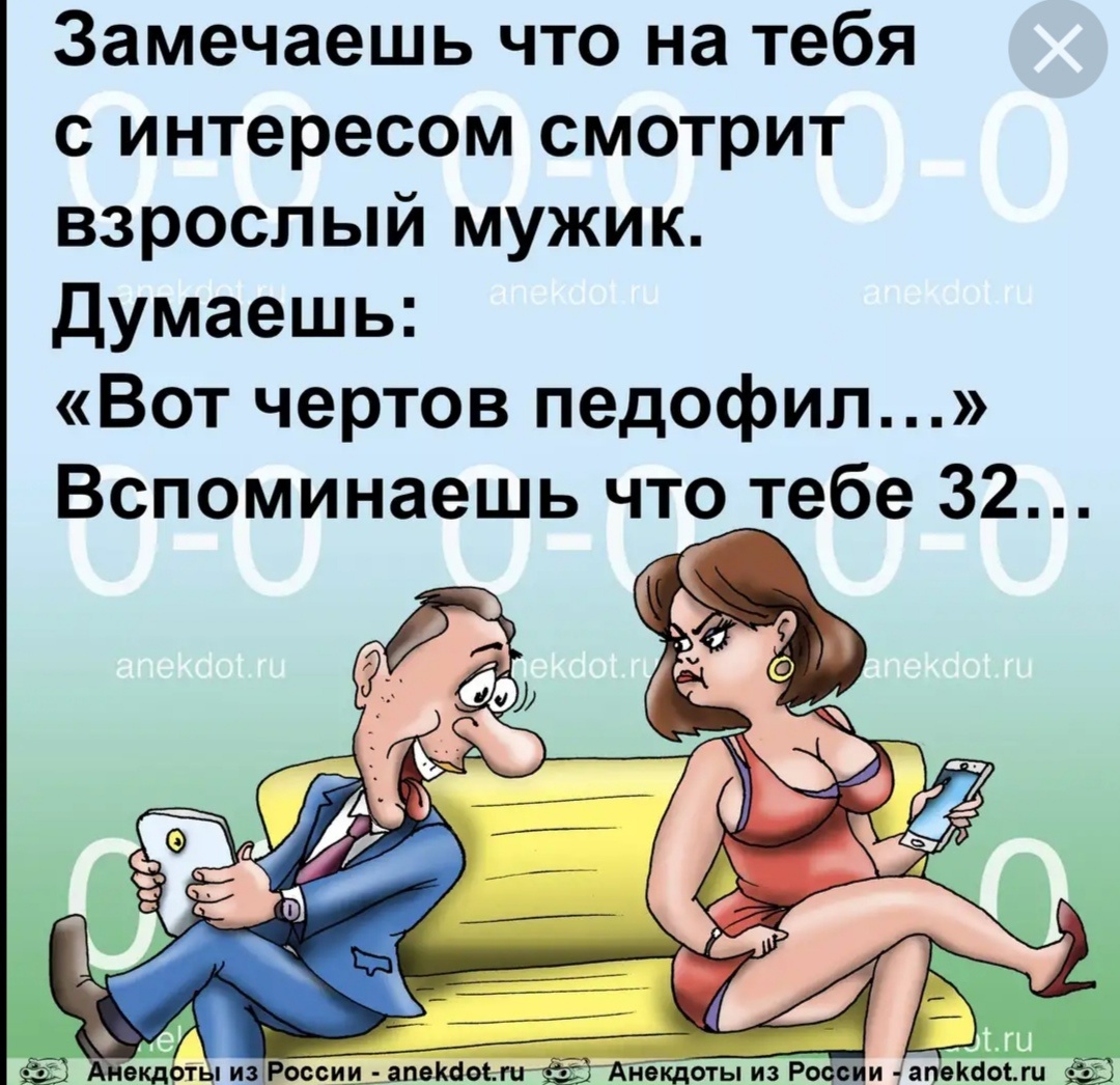 В семье геев: — Я хочу тебя! Не могу, у меня критические дни. — А что ты ел? ... Парень говорит будущей невесте. — Я вчера купил пылесос, Сосет замечательно! — То есть жениться ты на мне передумал? ... Муж шепчет засыпающей супруге: — Милая, я уже без трусов. Ладно спи, отвечает жена, — Завтра постираю. ... Вовочка говорит отцу: — Давай мамку выгоним, я сиську не сосу, большой уже. Ты с ней не спишь, так зачем ее для соседа кормить? ... Милочка! Какие у Вас красивые зубы! — Это от мамы! Надо же! Как подошли! ... Муж заболел гриппом. Собираюсь ему в нос капли закапать, зашла с сыном в комнату, жду пока проснется. Сын шепотом говорит: — Да чего ты ждёшь? Закапывай, пока спит. Муж сквозь сон: — Рано меня закапывать, тело ещё не остыло. ... Отправляю перед обедом ребенка мыть руки. Стоит и держит руки под струей воды. Говорю: — Мой руки, три их. Посмотрел на меня, как на ненормальную: — Две их. ... Заходит в троллейбус подвыпивший мужчина. В троллейбусе гробовое молчание. Он о