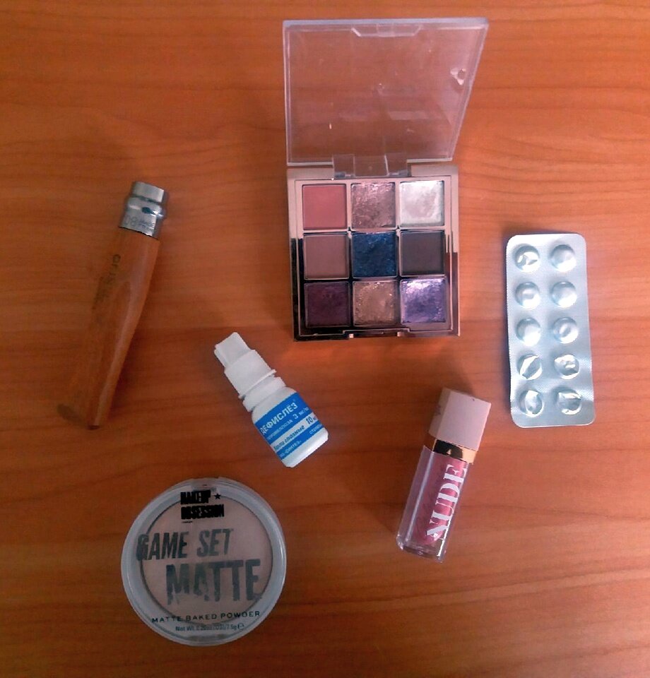 Тапкофотка того, что нашлось в моём рюкзачке прям щас (малая толика, разумеется). Палетка-лимитка от Lamel, бюджетная и внезапно очень удачная. Матовые очень пигментированные, наносятся как боженька. Сияшки сияют так, будто им