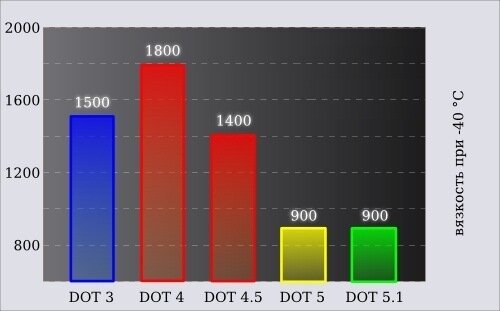 По стандарту FMVSS 116 кинематическая вязкость тормозной жидкости DOT 4 при -40°C не должна превышать 1800 мм2/с.