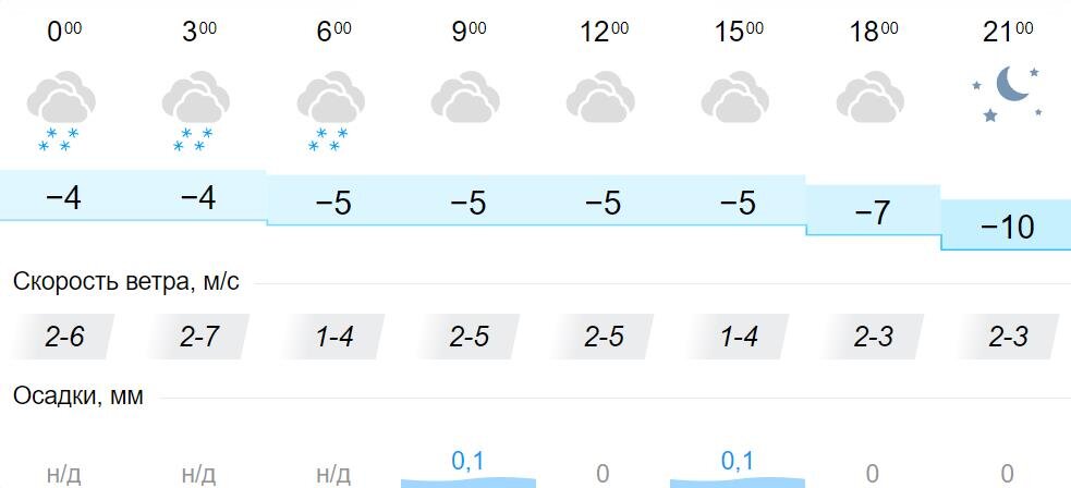 Синоптики рассказали, какая погода ожидает жителей Кировской области в четверг, 3 февраля. Днем температура воздуха составит -5°С, утром и вечером – от -5°С до -10°С. Весь день ожидается облачная погода, снег вероятен ранним утром. Скорость ветра в течение суток составит 1-7 м/с.