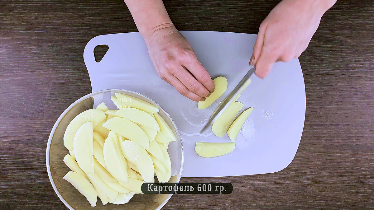 Кто был в Турции, тот меня поймет, у них очень вкусная кухня, я в нее просто влюбилась! Особенно мне понравились очень вкусные лепешки «Киймали пидэ»: у нас мало кто так готовит, а в Турции делают вместо пиццы. Если вам интересно, как приготовить «Киймали пидэ», то можете посмотреть видео 👇 А сегодня хочу поделиться с вами рецептом очень вкусного жаркого «по-турецки», я влюбилась в этот рецепт и теперь часто так готовлю на горячее. Для приготовления понадобится картофель 600 граммов. Картошку нарезаю дольками и укладываю в форму для запекания, смазанную растительным маслом. Потом делаю соус для курицы, для этого беру: Все ингредиенты перемешиваю и разбавляю водой. Затем беру куриные голени один килограмм, промываю их под водой и обмакиваю каждую голень в соус. Куриные голени вымакиваю в соусе и выкладываю сверху в форму на картофель. Туда же кладу четыре зубчика чеснока, которые разрезаю на две части. Дальше беру один помидор и нарезаю его на небольшие дольки. Помидор выкладыва