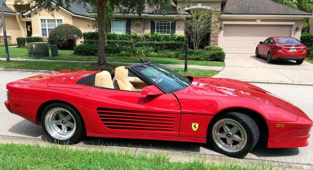При беглом осмотре запечатленный на фото автомобиль можно принять за Ferrari Testarossa, однако на самом деле это переделанный кабриолет Chevrolet Corvette 1989 года. Данная модификация называется "Brilliante", а построили ее специалисты мастерской "Classic International", причем тюнинг машины обошелся владельцу в 37 000 долларов (2,9 млн рублей по ныненшему курсу). Реплика Феррари Тестаросса на базе старого Корвета имеет характерную форму передних и задних панелей, которые как раз таки и придают донорскому автомобилю сходство с итальянской моделью. Плюс модификации положены сделанные на заказ крылья, стальные пороги и измененные двери. Она окрашена в ярко-красный цвет и поставлена на 17-дюймовые колеса с покрышками размерностью 275/40 и 315/35 спереди и сзади соответственно. Из особенностей салона машины стоит отметить новую кожаную обивку с деревянный декор. Здесь имеются проигрыватель компакт-дисков со 100-ватнным усилителем и шестью динамиками, а также сигнализация и руль Momo. Пом