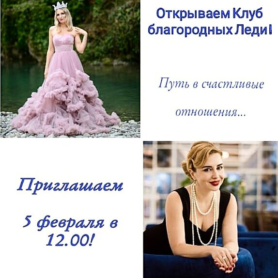 Открывает двери наш Клуб благородных леди! Цикл из 6 встреч 👉 Путь в новую счастливую жизнь! ⠀ Ты перестала излучать внутренний свет, утратила ощущение женственности, магии, леди, у которой весь мир к её ногам и все блага, тебя не замечают мужчины или если встречаются, то все не то. А любви и отношений хочется? ⠀ 🔥 1 встреча - 5 февраля в субботу с 12.00-17.00 "Освободись от боли, обиды и чувства одиночества. Открой Сердце" ⠀ И я не могу умолчать что мы вам подготовили к завершающей встрече ⠀ 🔥6 встреча. Выпускной вечер 🥂 ⠀ " Мистическая феерия 💫 Знакомство с мужчинами" это наша вишенка на торте и мы готовим фантастическое мероприятие, но пока все под секретом 😉 ⠀ Вести 1 встречу будем я и моя Инна @Retrit_dom_sochi ⠀ Хочется поклонников, цветов и подарков 🎁, путешествий, и из потока достойных мужчин выбрать того самого? ⠀ Если волнует этот вопрос, тебе точно нужно вступить в наш клуб 🙌 ⠀ Стоимость (по предоплате):