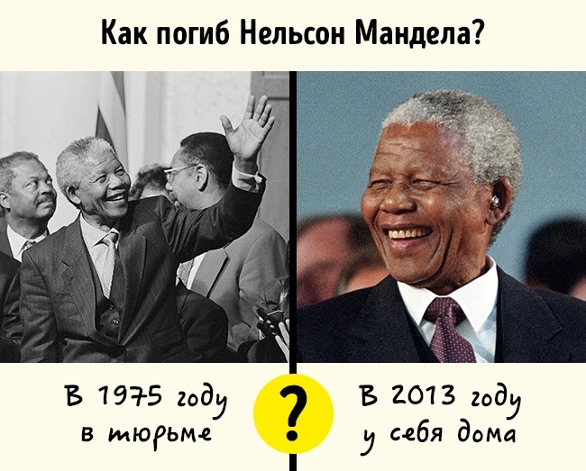 Началась вся эта история в 2013 году, с довольно печального события. 5 декабря на 95-ом году жизни скончался Нельсон Мандела. Он был первым президентом ЮАР и активным борцом за права человека, за что он даже сидел в тюрьме в период расовой сегрегации на территории Южно-Африканской Республики. Однако траур смутило одно событие: некоторые люди начали утверждать, будто Мандела умер в 80-ых в тюрьме. Так как такое могло произойти?