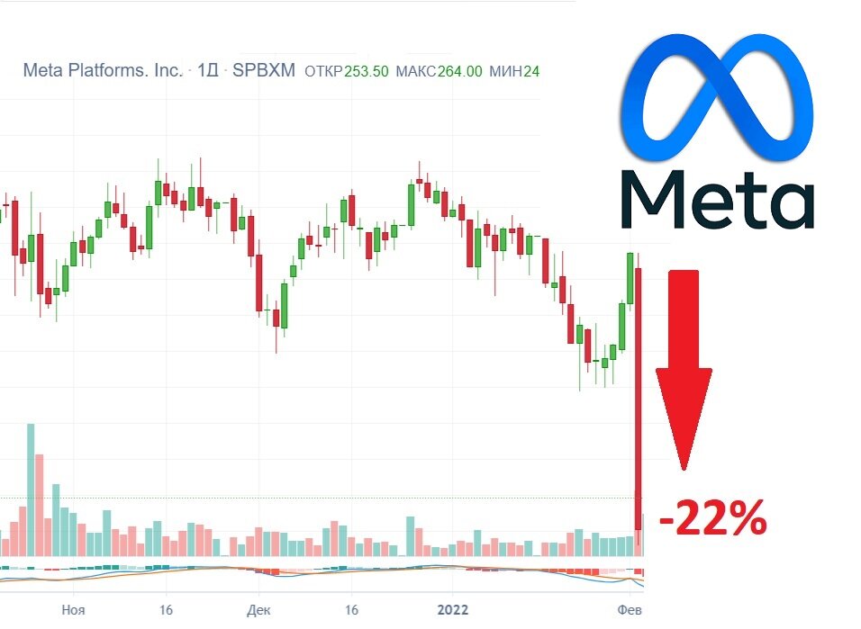 Meta (Facebook) упал с открытия рынка на 22% и потерял 200 млрд $, разбираемся почему