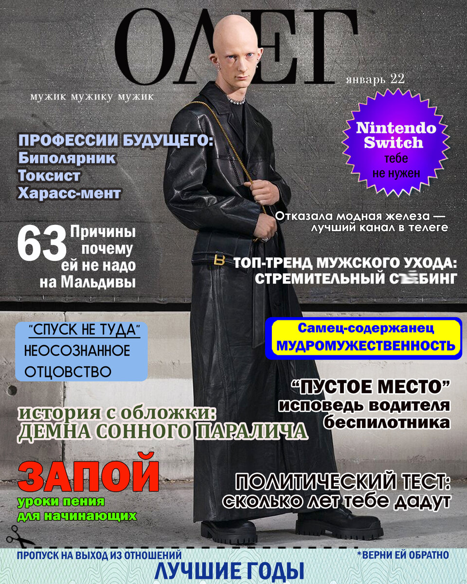 1. Начнём с новенького третьего выпуска мужского журнала мод "Олег".