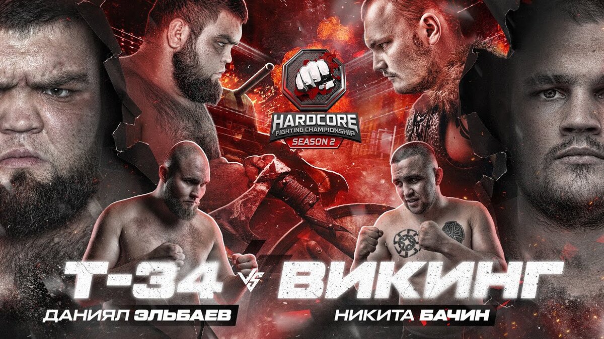 Даниял "Т-34" Эльбаев сразился с Никитой Бачиным на голых кулаках, в рамках главного боя ивета Hardcore FC. Напомним, что в кулачных поединках нет борьбы. Даниял Эльбаев забирал первую часть боя, перебивая и отправив Бачина в нокдаун, но потом начал пропускать. От одного из ударов у Т-34 порвалась капа, защищающая зубы. Я видел подобное впервые. Запасной капы у Данияла не оказалось, ему дали чужую, взяв у кого-то из зала. Все это продолжительно время Эльбаев отдыхал. Бой продолжился, Никита Бачин стал перебивать Т-34. Эльбаев клинчевал, а потом стал проводить броски. Рефери вынес предупреждение и снял балл. Даниял продолжил менять правила боя и переходить в борьбу. Итог поединка наступил во втором раунде. Эльбаев провел бросок на бок, приземлился на Бачина, а также нанес добивающий удар в корпус. Никита сломал ребро и не смог продолжить бой, а Данияла дисквалифицировали. Руководитель организации Анатолий Сульянов был в гневе и в эмоциональной форме высказал свое мнение Эльбаеву и поо